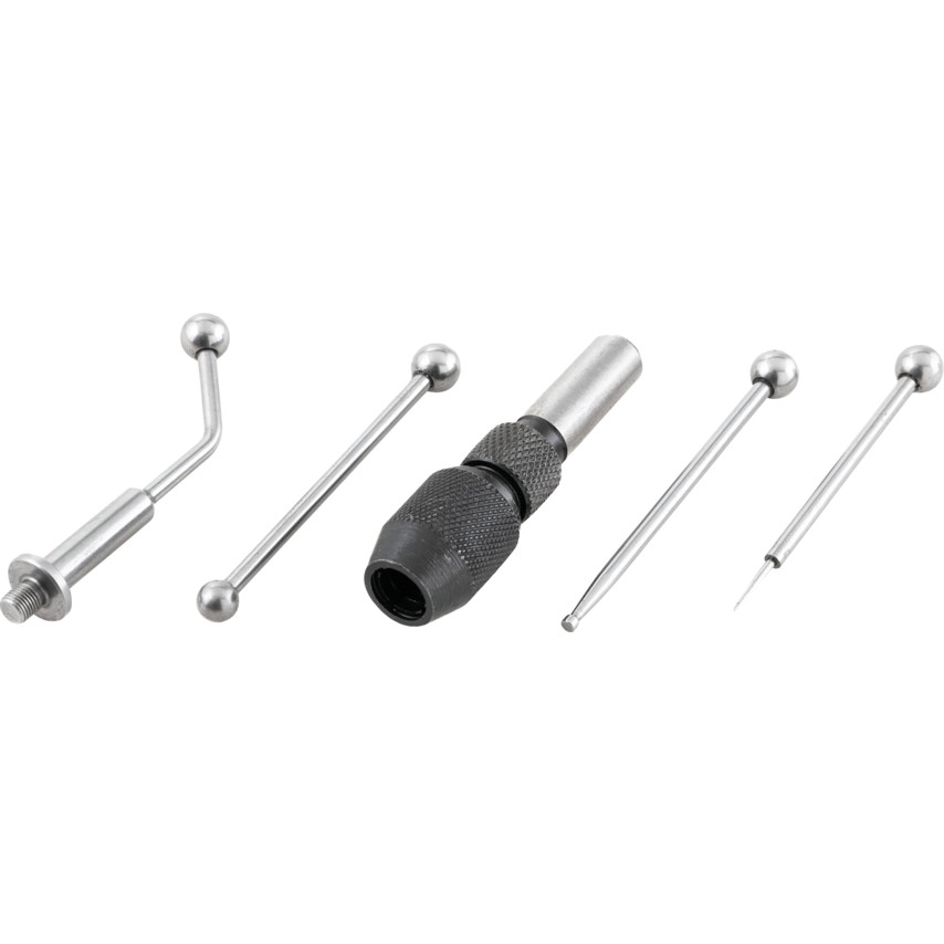 Consists of a chuck body and four contact arms. Designed to check ‘run-out’ or concentricity, straightness and alignment. Will indicate the position of a datum point on a component or fixture from the centre line of a machine spindle. Suitable for use on drill presses, lathes, milling machines, borers etc. | | Contents: Chuck Body, Universal Indicator Holder, Needle Point, Ball Contact, Disc Contact.